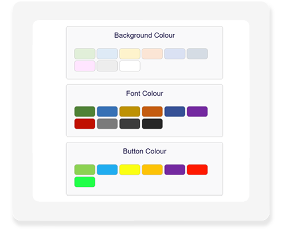A simple layout for Background, Font and Button colours, with different colours to suit your users specific needs.